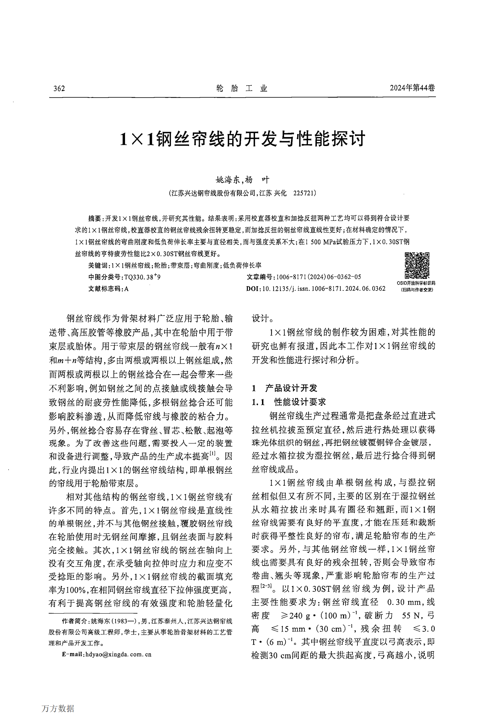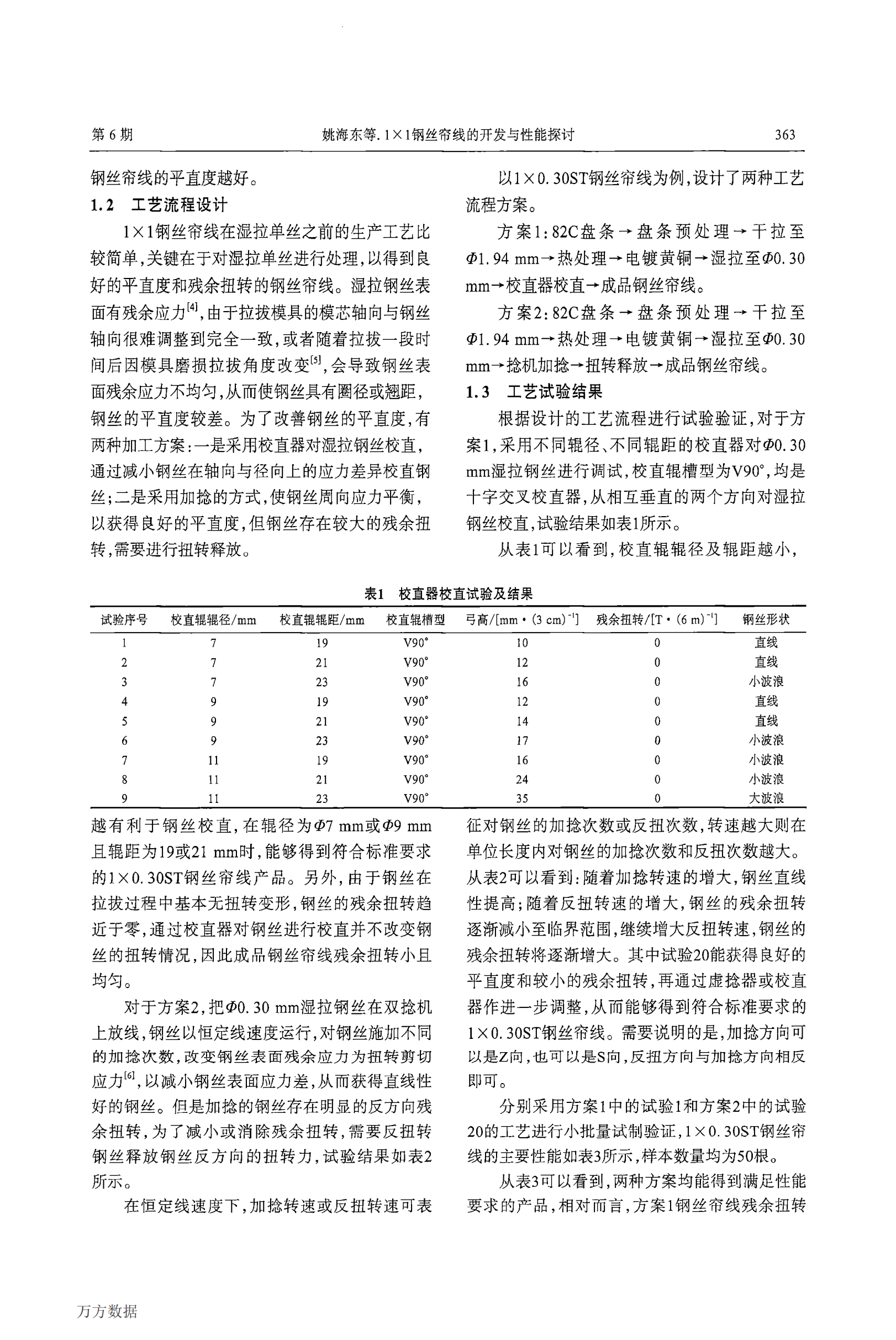 1 X 1鋼絲簾線的開發(fā)與性...